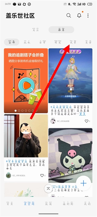 1、启动盖乐世社区应用,点击界面底部的“星空间”选项,即可进入星空页面。