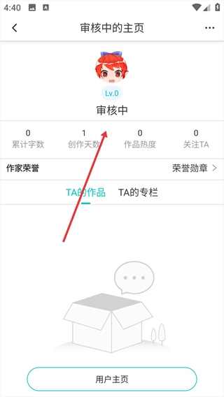 4、提交申请后,进入审核中的主页,页面会显示【审核中】状态,此时需等待平台对作家申请的审核结果。