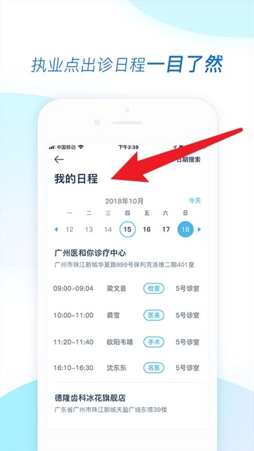 3、我的日程页面会呈现每日的出诊安排,这些安排按照时间和地点进行了清晰的梳理,能够帮助你更合理地规划自己的工作节奏。