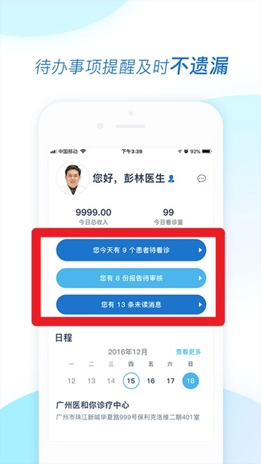 4、首页待办提醒功能着重展示待处理事项,涵盖待看诊、待审核以及未读消息,防止重要任务被遗漏。