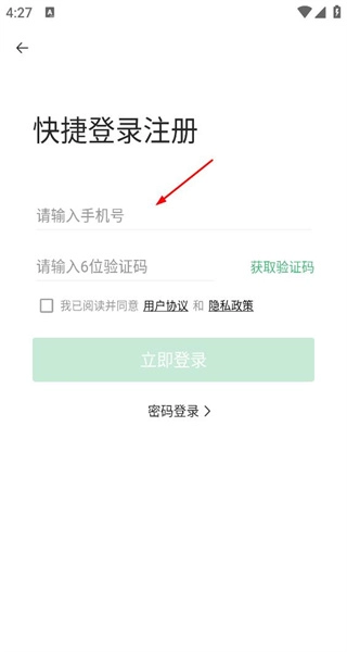 4、进入快捷登录注册界面,找到手机号与验证码的输入区域,准备录入相应信息,完成登录操作以便使用相关功能。