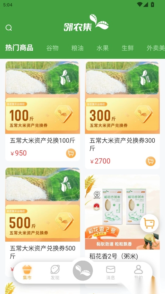 3. 进入“集市”页面后,找到“邻农集”功能并点击进入