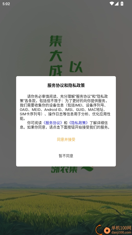 1. 打开软件后阅读《服务协议和隐私政策》,点击“同意并接受”按钮进入下一步