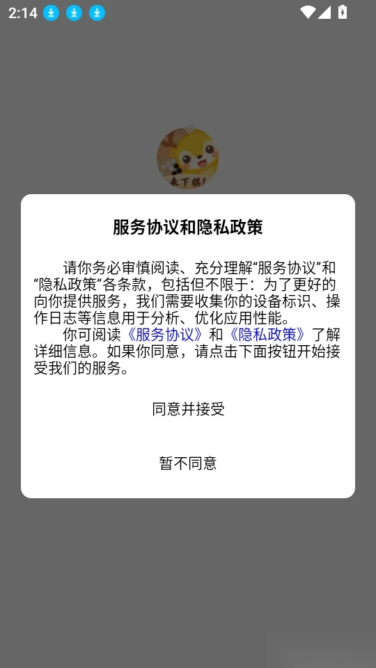 2、随后阅读完平台的“用户隐私协议”内容,点击“同意”按钮以进入下一步操作。