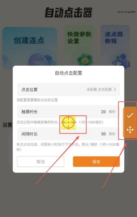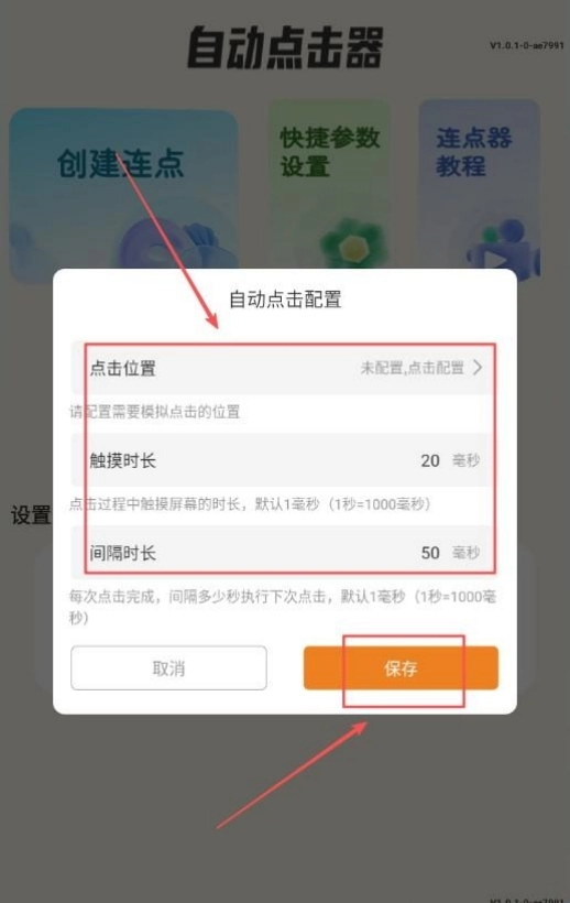 2、新建点击任务并配置详细参数,涵盖点击位置坐标与点击频率间隔。