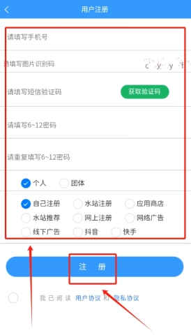 3、新用户打开软件后,先输入手机号获取验证码,填写验证码后设置新密码,即可完成注册,准备迎接源源不断的水源。