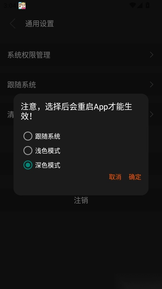 6. 最后选择“深色模式”,再点击“确定”按钮,这样就完成设置了。