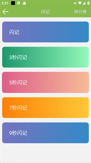 2、这里以【闪记】为例,划分出了3秒、5秒、7秒、9秒等不同时长的闪记训练,用户能够依据自身的实际情况进行选择。