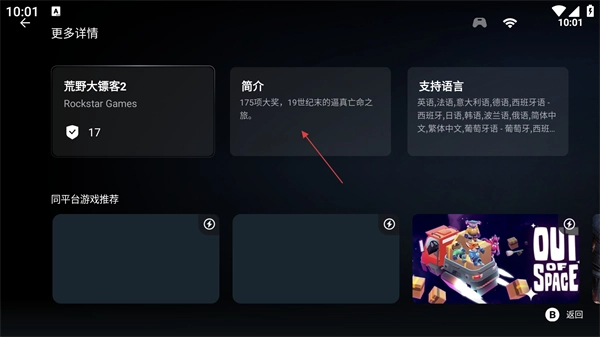 4、进入简介详情页面后,能够查看《荒野大镖客2》的详细介绍,系统了解这款游戏的获奖情况、剧情故事等相关内容。