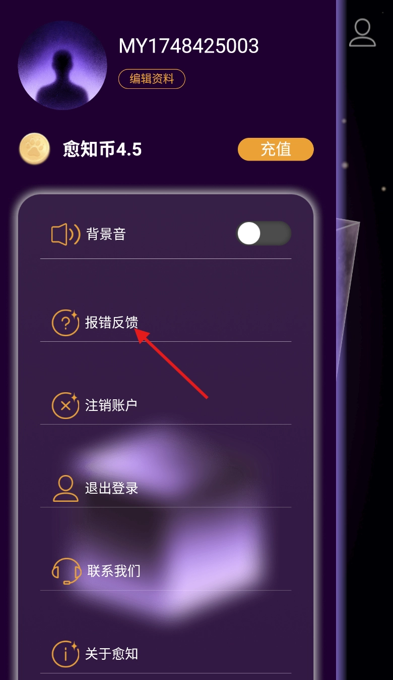 进入个人页面后,在功能选项区域找到“报错反馈”按钮并点击,即可进入意见反馈界面。
