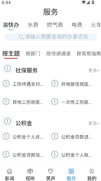4、点击“服务”板块,能看到水费、电费、燃气费等生活缴费的入口,大家可以依据自身实际情况,选择进行查询或者在线缴纳相关费用。