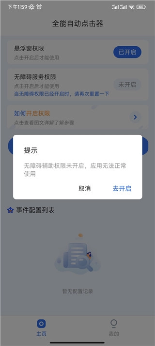 1、在本站完成安装后点击打开进入,在主页中需要开启悬浮窗权限与无障碍服务权限。