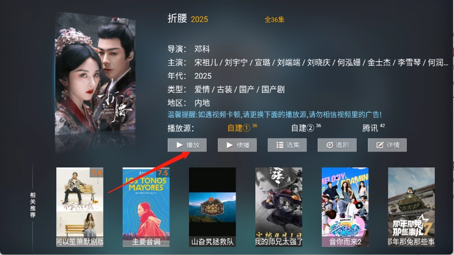 4、用户点开想看的影片进入详情页,点击“播放”。