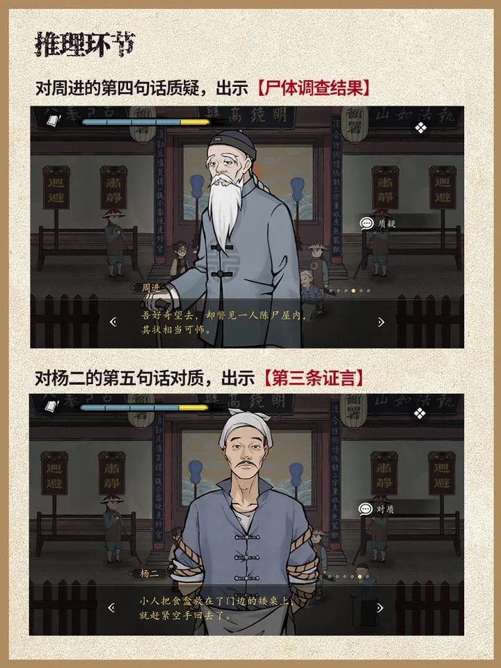 借助这份攻略,你可以轻松第三章的诸多疑团,比如遇难者为何会凭空出现、疑犯又是怎样离开现场的。攻略里会详细讲解推理的每一步,包括该质疑对话中的哪句话、选择哪些证物,帮助你顺利解开谜题。有了它,你就能更顺畅地沉浸在游戏的乐趣中,不用再为第三章的难关而烦恼,尽情享受《山河旅探》带来的精彩探案过程,轻松揭开第三章背后隐藏的真相!
