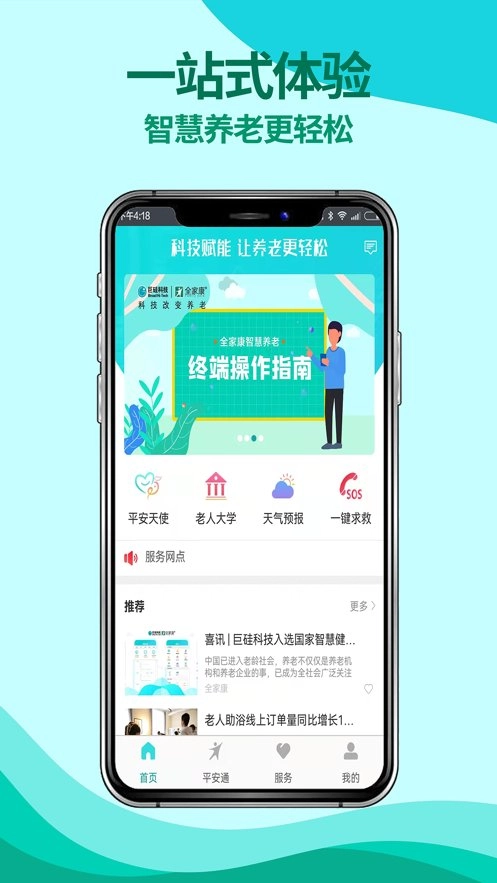 全家康平安通专注于为您与家人提供全方位的优质养老服务,助您足不出户即可获取各类养老资讯,享受个性化的一站式养老服务,时刻守护老人的安全。