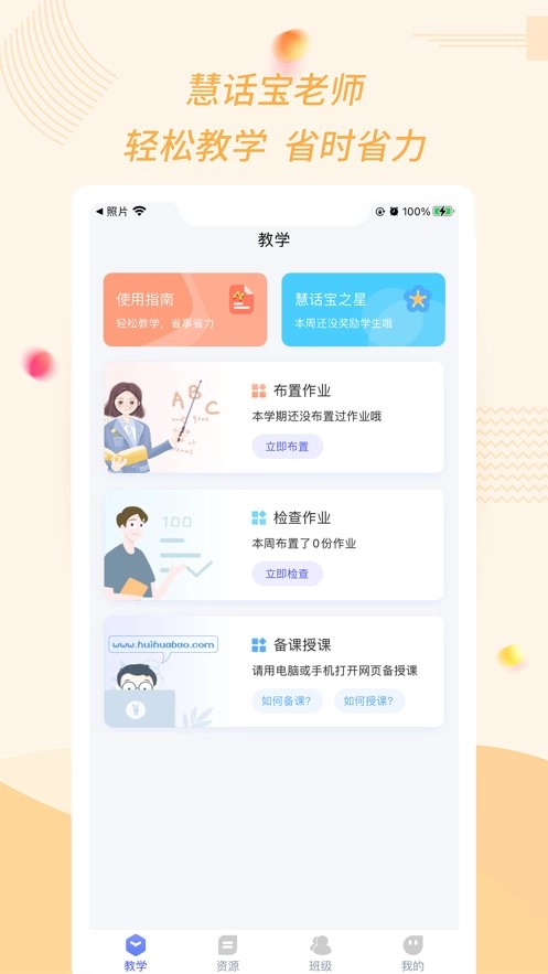 【班级与学生管理】:老师添加自己负责的班级后,就能查看班上使用慧话宝学习的学生情况,还可以给他们布置作业,或者对表现优秀的学生授予慧话宝之星的奖励。