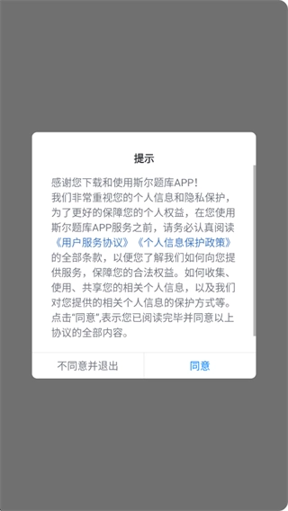 1、斯尔题库安装完成后,第一次打开使用时会出现提示,所有提示都直接点击同意即可。