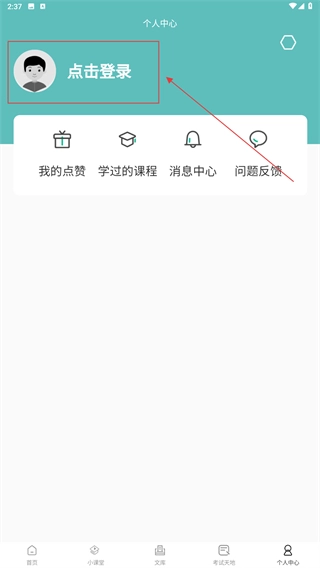 1、打开个人中心页面,点击【点击登录】的区域,就能进入账号登录界面,在这里可以通过多种方式完成登录操作。