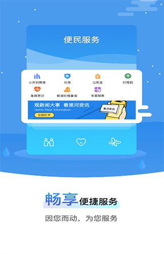 我的黑河是黑河市大数据中心研发的,专门为黑河地区用户量身打造的一站式城市服务软件,集政务、民生服务、文化旅游推广于一体,旨在为你提供更加优质的生活服务。软件以市民的需求为主要宗旨,依托于大数据技术,市民无需下载多个APP,就可以享受全面的服务,不管是业务办理,还是社保查询,线上就可以搞定,避免了线下排队的麻烦。