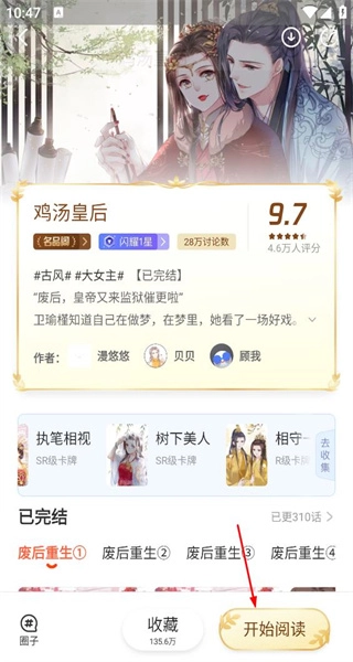 4、进入作品详情页后,查看该作品的评分与简介,接着点击开始阅读按钮,即可进入漫画阅读界面。