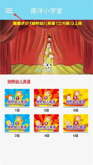 1、打开【南洋小学堂】的首页后,点击页面左上角带有三条横线的菜单按钮,就能展开侧边的功能栏。
