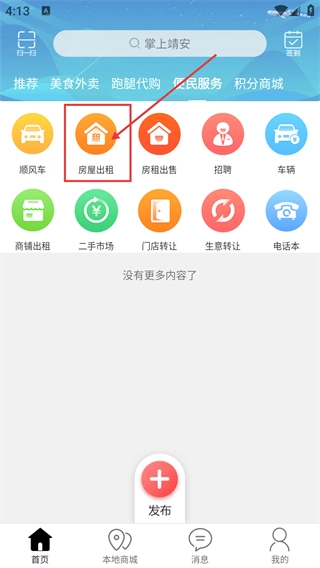 2、在便民服务板块里,找到【房屋出租】选项并点击,即可进入房屋出租信息列表页面。