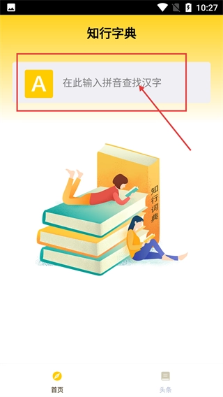 1、点击【立即体验】按钮,进入【知行字典】应用,该应用可通过拼音检索汉字,并获取汉字对应的详细信息。