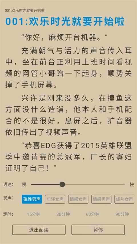 完成之后就能开始听书了,界面下方还可以进行听书相关的设置。