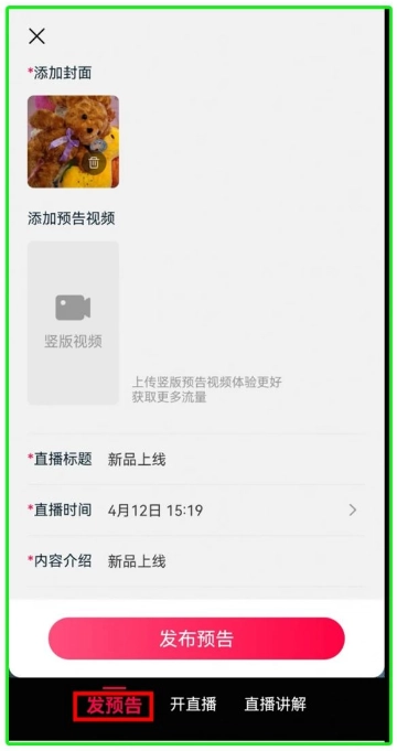 步骤六:发布直播预告