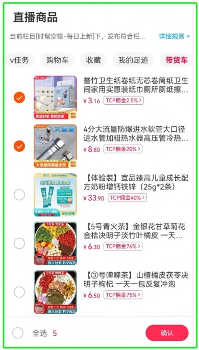 1. 推荐货品池,直播好货任你选