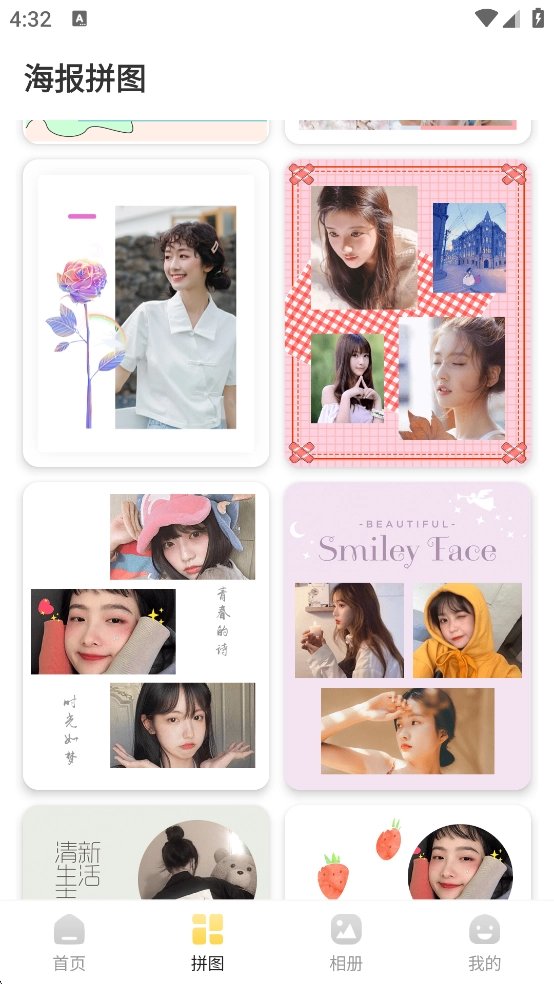 4、【海报拼图】:提供海量精美海报拼图模板,支持拼接照片,并且具备添加水印、涂鸦等功能。