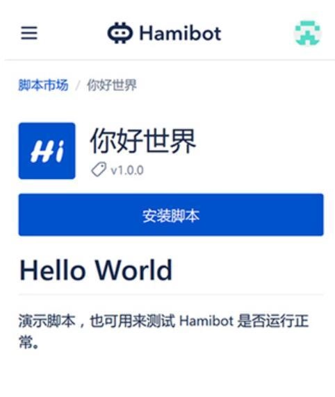 2、挑选你想要安装的脚本,这里拿「你好世界」来举例,点击「安装脚本」按钮。