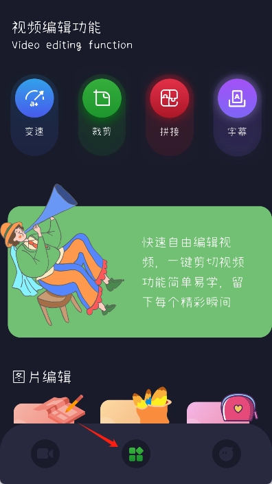3、录制完成后,点击软件中间的“编辑”图标。