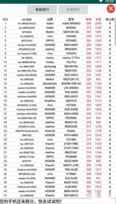 在线排行榜:您的跑分数据会被上传至软件数据库并与其他用户共享,您也能通过查看自己在排行榜里的名次,大致了解手机的性能表现。
