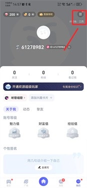 1、在我的界面中点击右上角三横线。