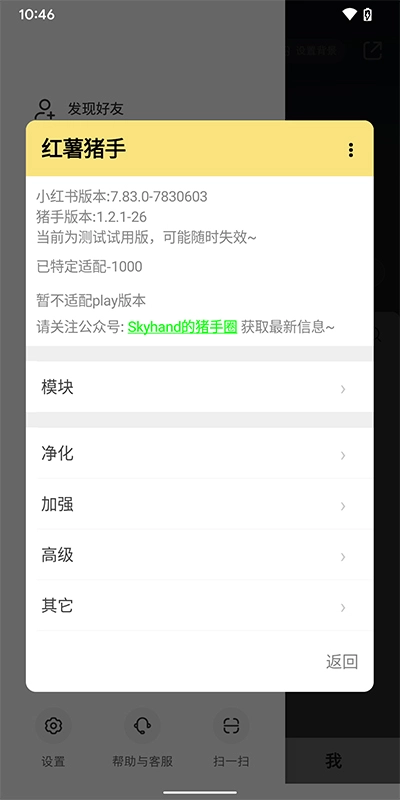 2、在框架管理器中点击“红薯猪手”,启动该模块,然后选择小红书应用进行使用。