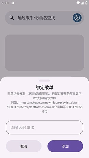 3、软件仅支持酷我音乐歌单导入。