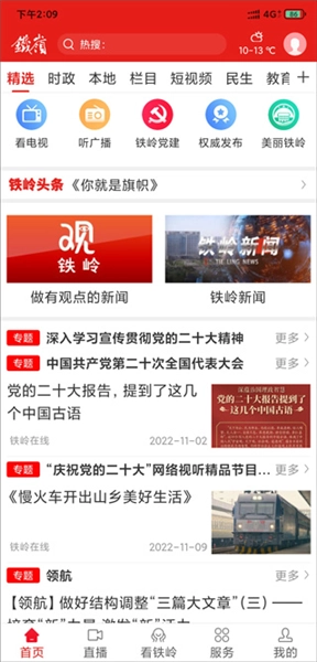 3、打造了内容丰富的融媒体服务专区,在主页中设置了融媒矩阵、美丽铁岭、平安铁岭等特色板块
