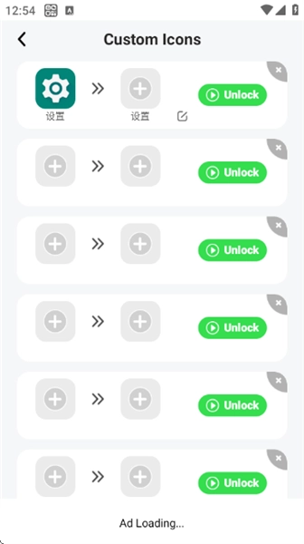 在“Custom Icons”界面,能够选择解锁不同应用的自定义图标样式。