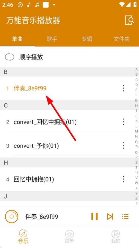 4、扫描结束后,在音乐列表里点击【伴奏_8e9f99】就能播放这首音乐了。