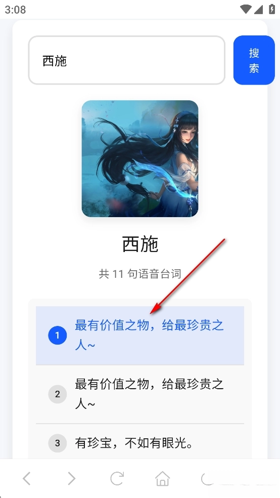 即可获得西施的大量语录语音,可以点击进行播放
