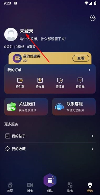 2、在个人中心页面点击登录,进入登录页面。