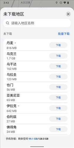 5、安装完基础数据后,点击下方的“未地区”选项并选择想要的地区地图资源即可(注意部分国家地区暂无离线地图资源)