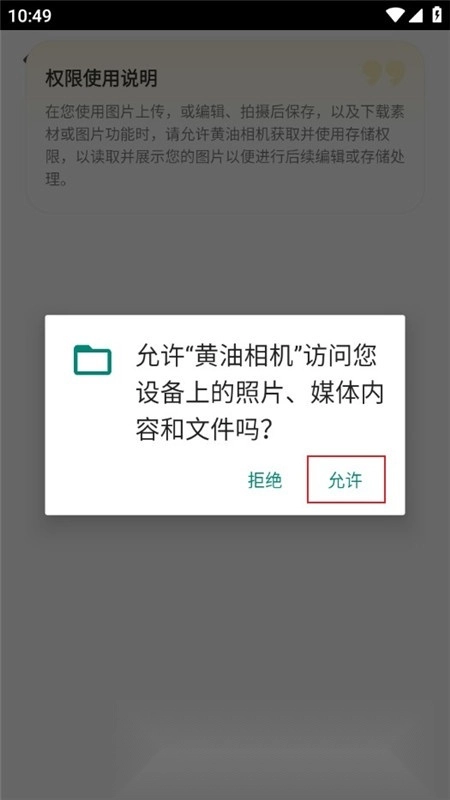 2、首次使用时弹出权限请求,点击“允许”访问设备照片和文件;