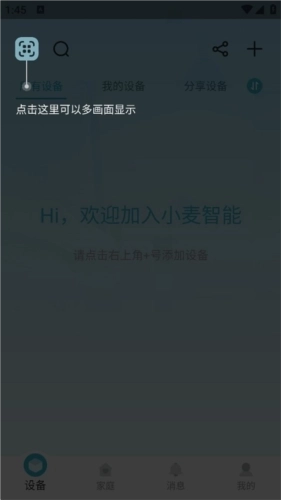 1、如图所示,当用户成功注册并登录小麦智能后,可在此处添加设备。