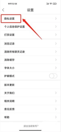 3、进入设置界面,点击【隐私设置】
