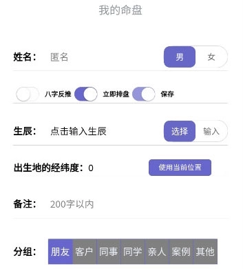 2.支持自定义分组功能,实现与天纪排盘电脑端命例展示的互联互通