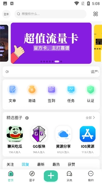 3、点击"+"号可以发布帖子或者文章