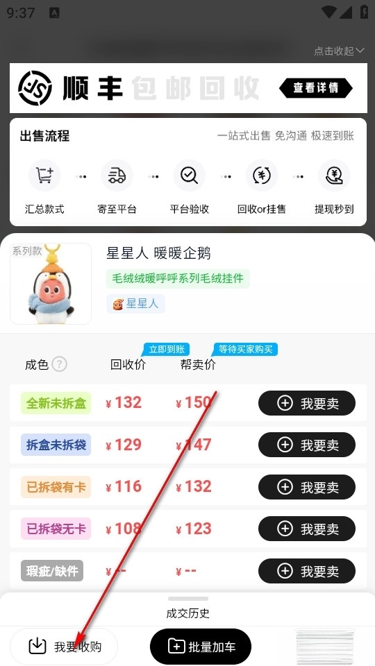 所有成色的盲盒商品都可以在平台上售卖,用户可以轻松售出现有的大量盲盒。