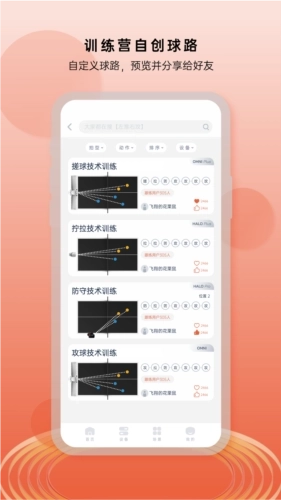 来训练营体会自定义乒乓球路的畅快与自由,还能一键分享球友交流切磋!